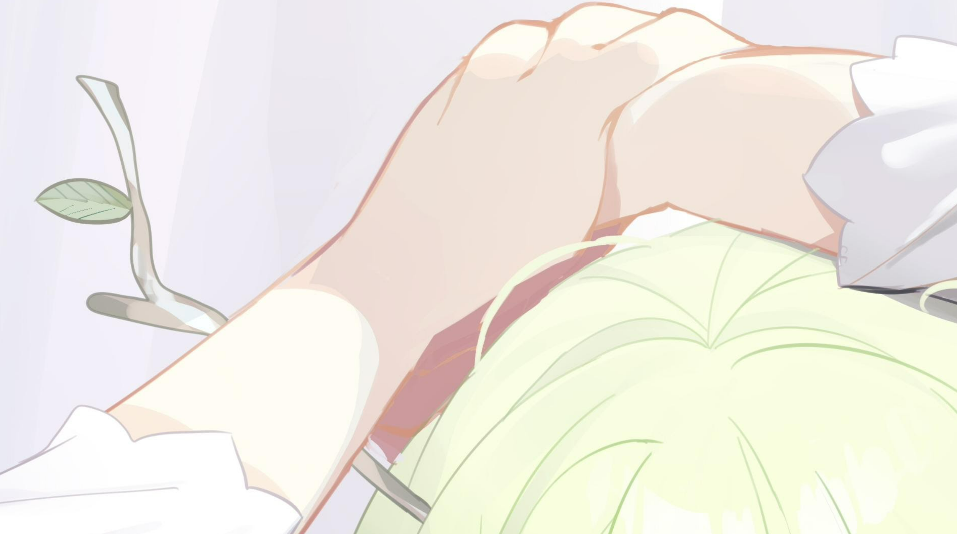 The shirt is in front of the palm of her right hand somehow.deyui's art style changed and their pace picked up significantly in 2023, seems ai-assisted to me at the very least.