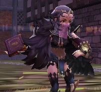片手にリザイアの魔道書を持たせてほしいのですが、ifリザイアの詳細な資料がないので表紙が紫色の魔道書のような感じであればよいです。
